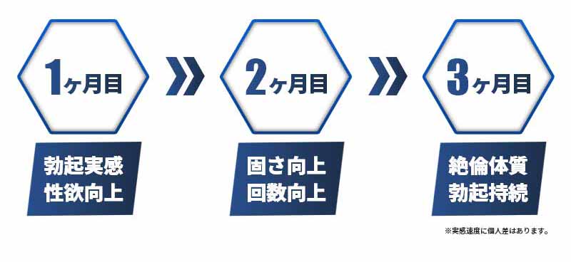 継続して飲用いただく事で体質が徐々に変化し、3カ月後には絶倫体質へと生まれ変わります。